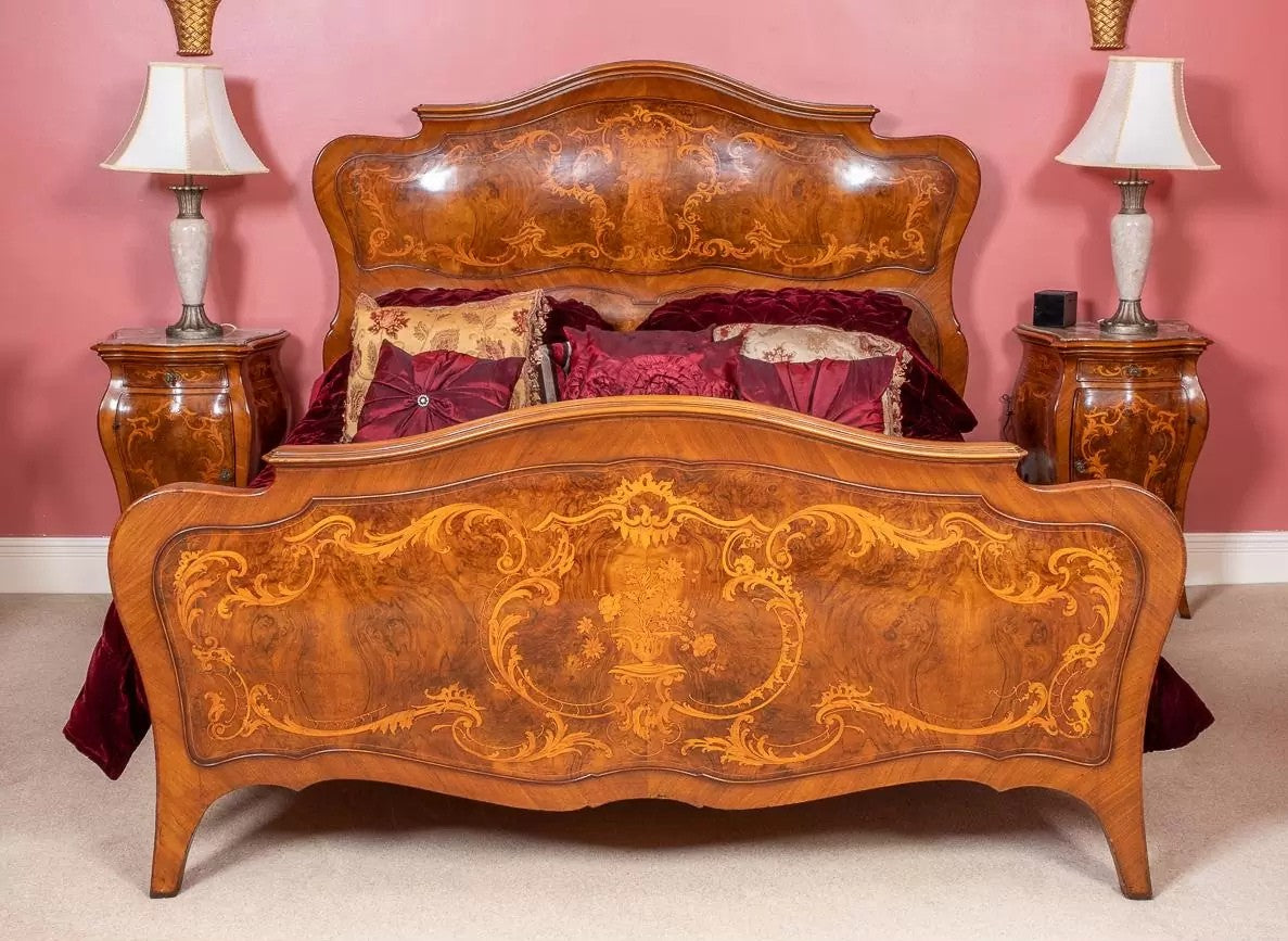 Amazing 6 Piece French Burr Walnut and Marquetry Bedroom Suite