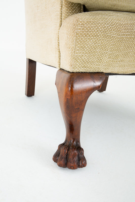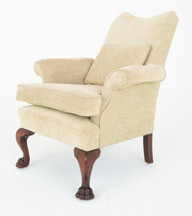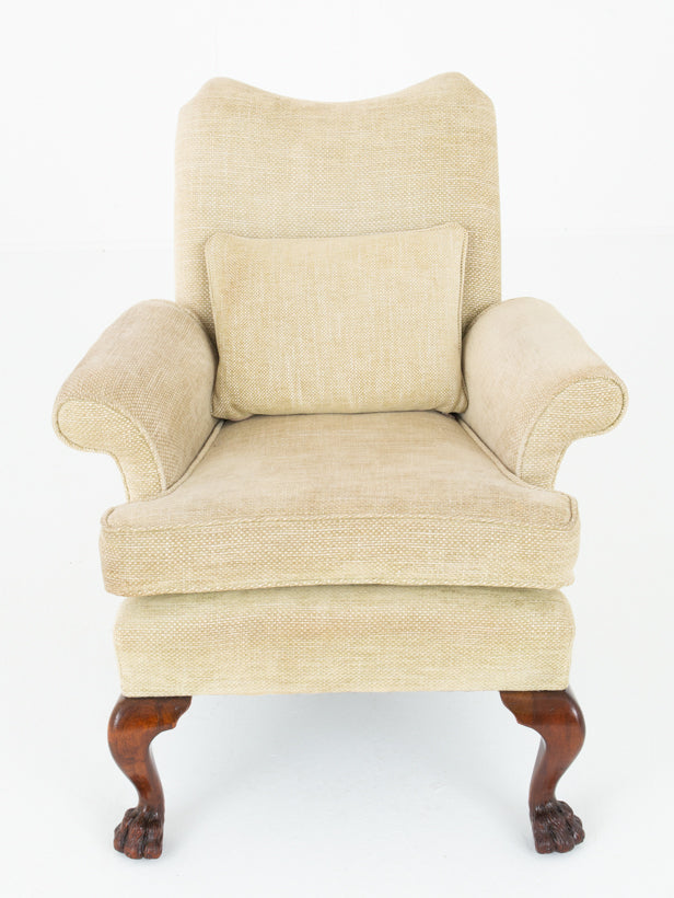 This Arm Chair is Raised Upon Impressive Cabriole Front Legs with Carved Hairy Paw Feet and Swept Back Legs.