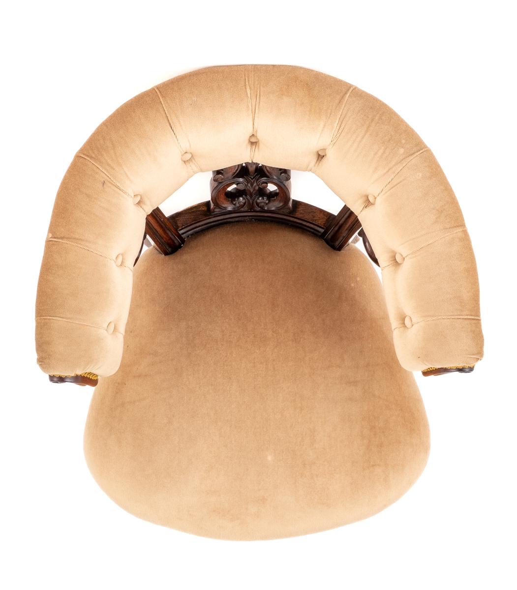 This Tub Chair Stand Upon Turned and Fluted Front Legs with Original Castors and Swept Back Legs.