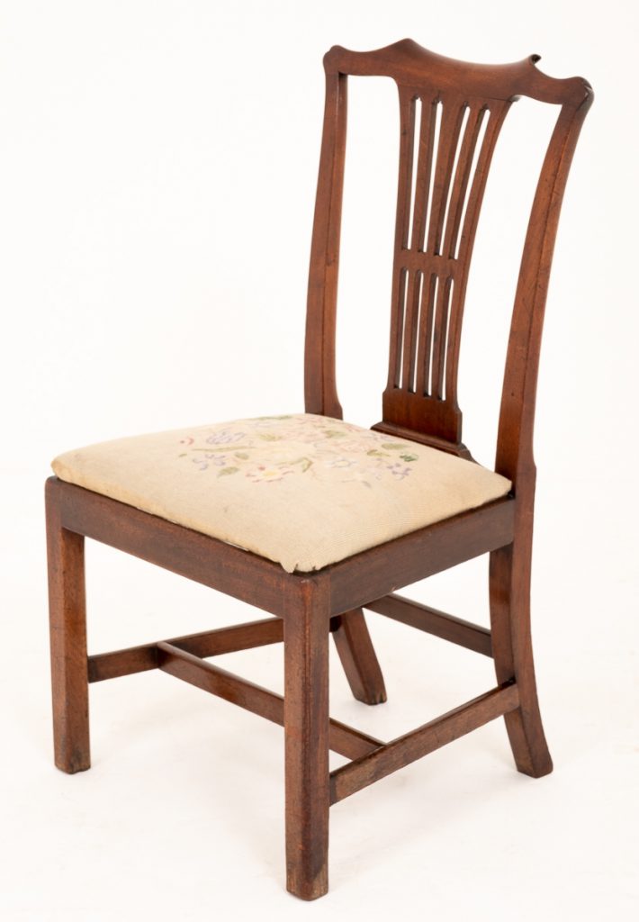 The back splat having pierced detail terminating with a nicely shaped cresting rail.