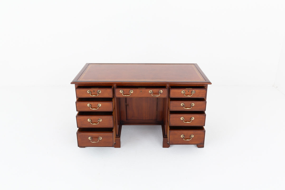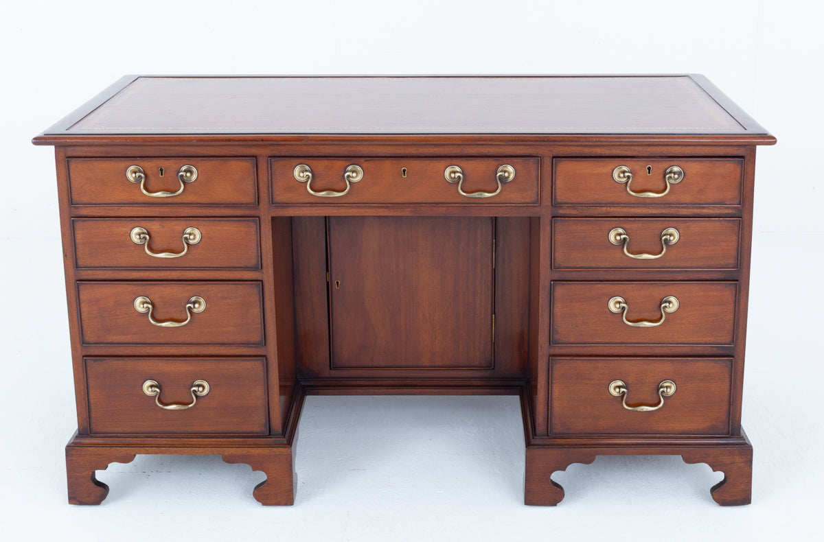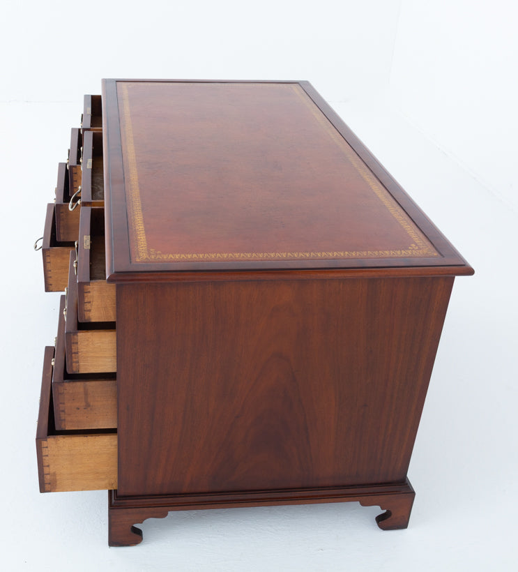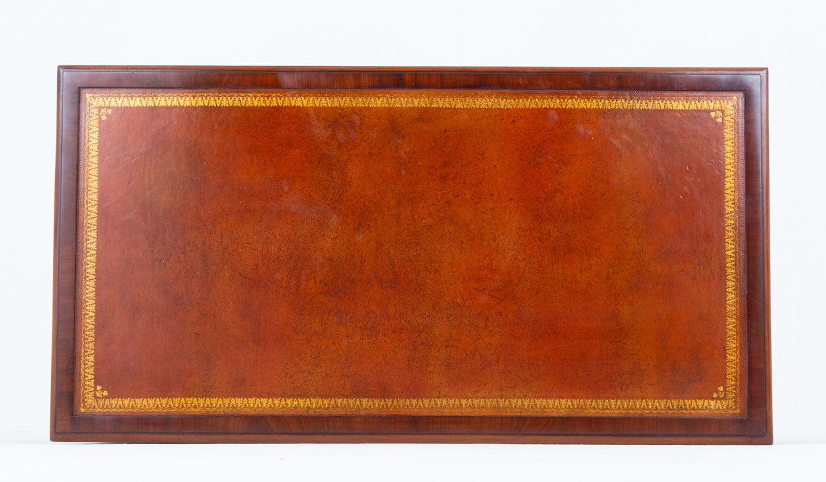The Top of the Desk Having a Brown Leather Writing Surface With Hand Applied Gilt and Blind Tooling and Finished With Cross-banding.