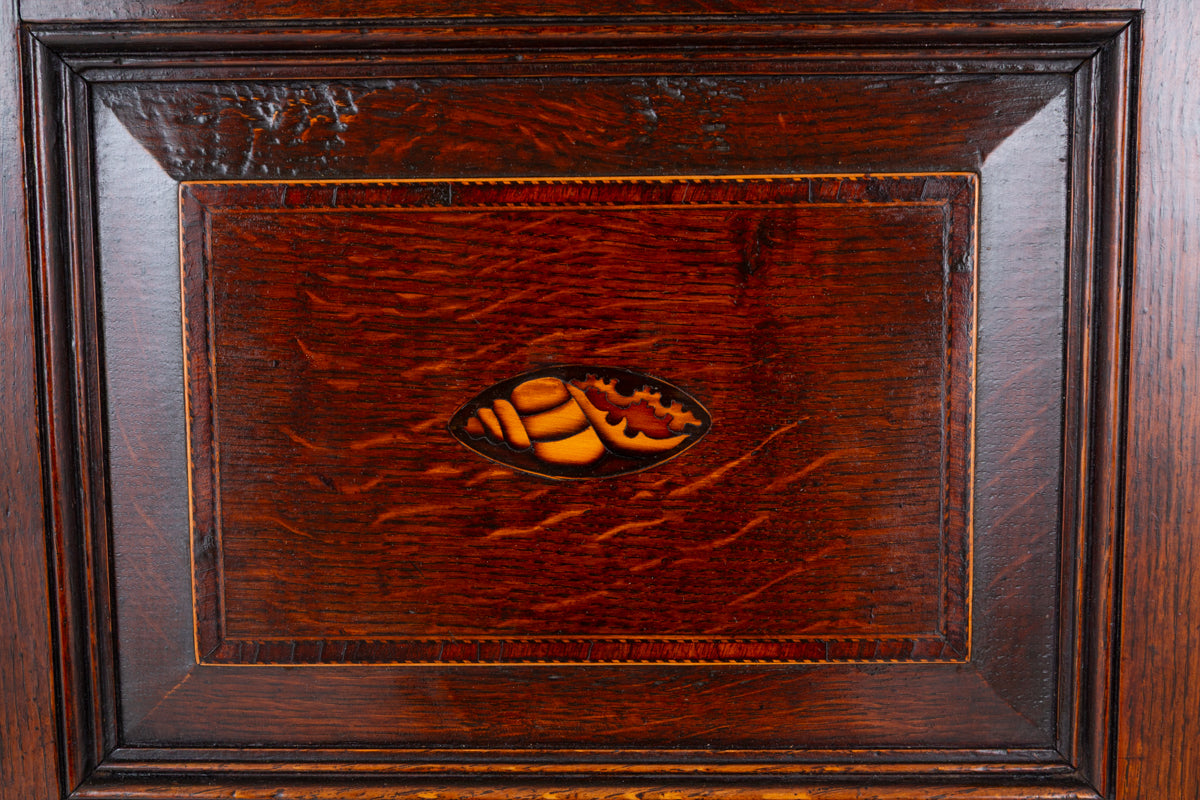 The Upper Section Having 2 Panelled Doors with Marquetry Shell Inlays and Brass "H" Hinges which Open to Reveal Shaped Shelves.