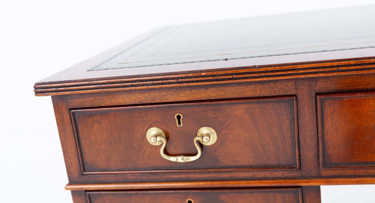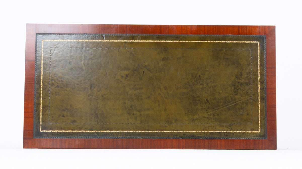 The Top of The Desk Having Reeded Mouldings, Crossbanding and a Fitted Green Leather Writing Surface (replacement) With Hand Applied Gilt and Blind Tooling.