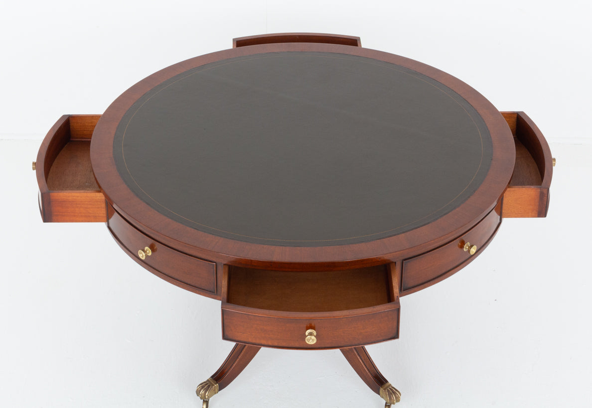 The Table Features 4 Mahogany Lined Drawers and 4 Faux Drawers, Each Drawer Having Brass Decorative Pull Knobs.