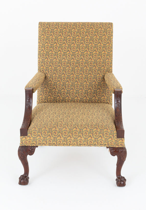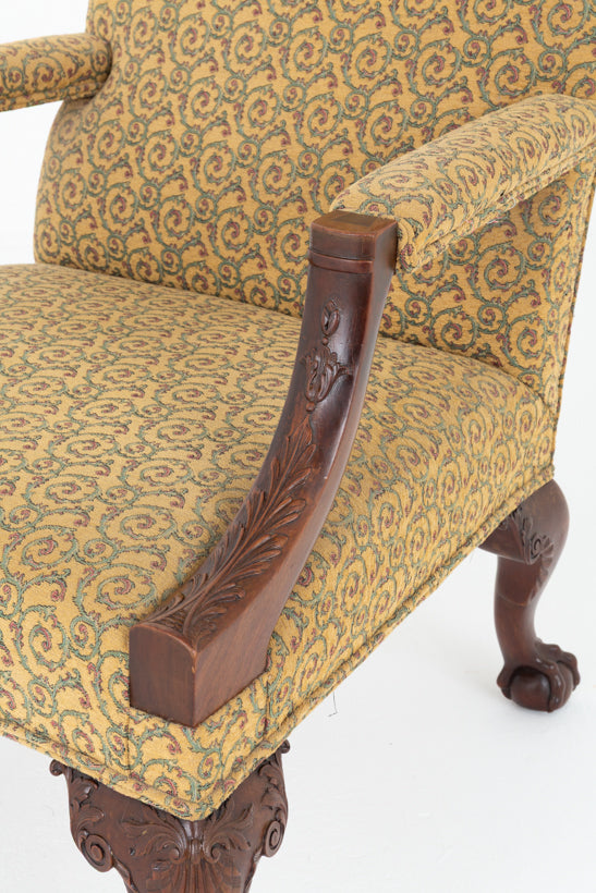 This Imposing Chair Stands Upon Well Carved Cabriole Legs with Boldly Carved Ball and Claw Feet.