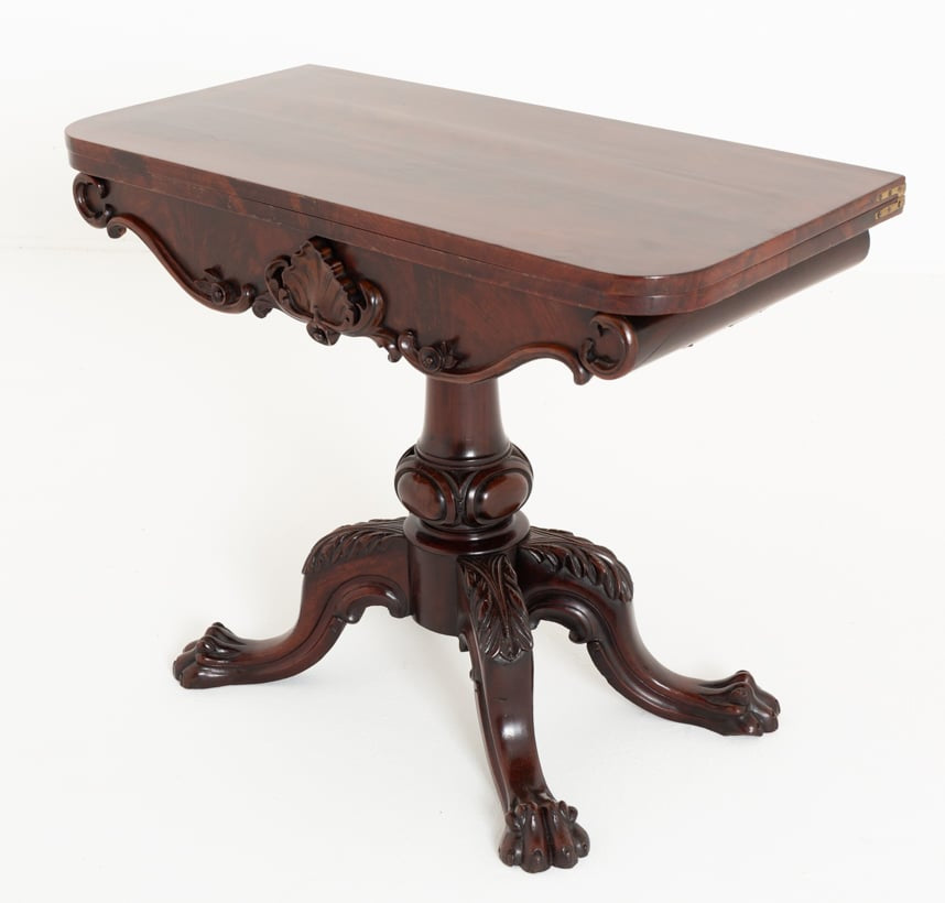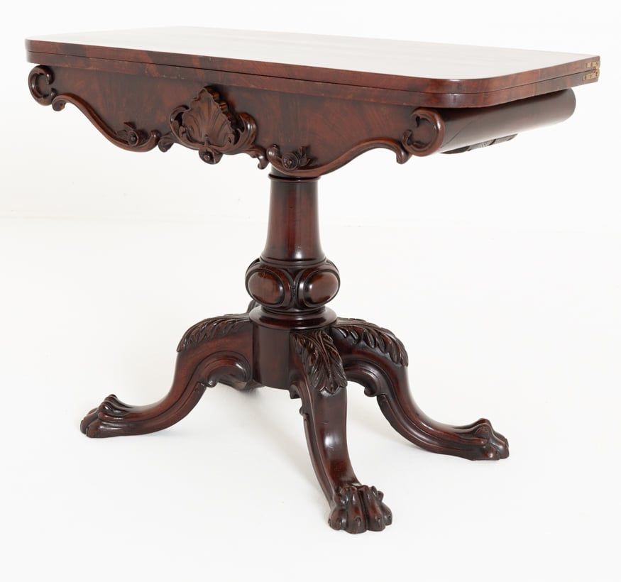 This Impressive Mahogany Irish Card Table Stands Upon Swept Legs with Carved Knees and Carved Lions Paw Feet.