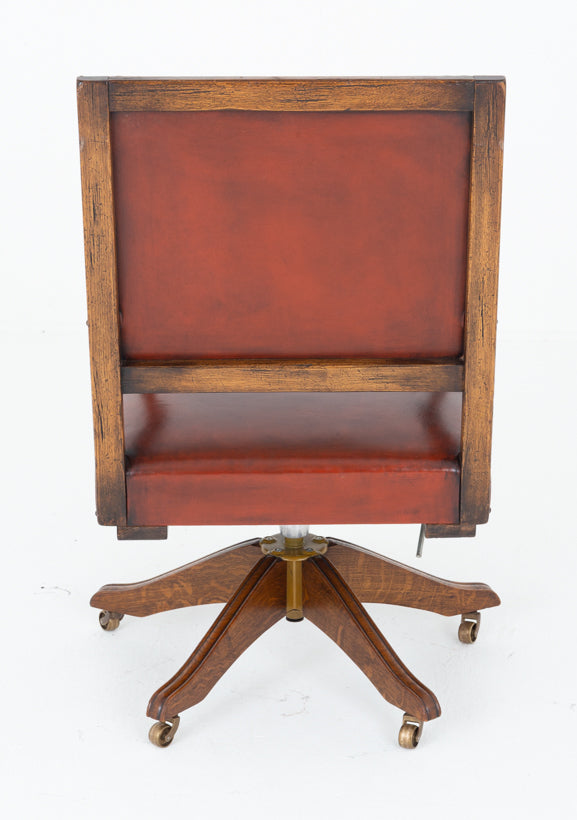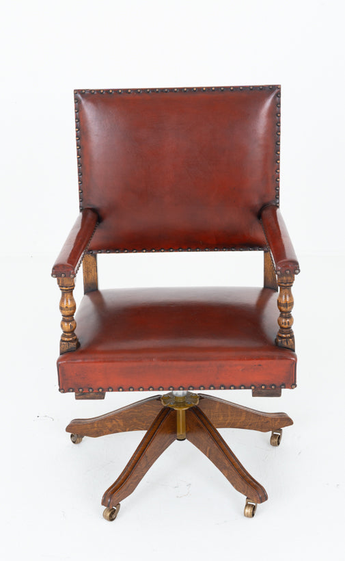 This Chair is Raised Upon a 5 Leg Revolving Base With Brass Castors.