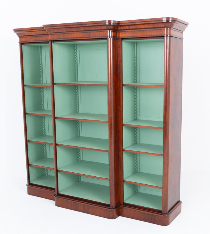 Large Victorian Mahogany Breakfront Open Bookcase