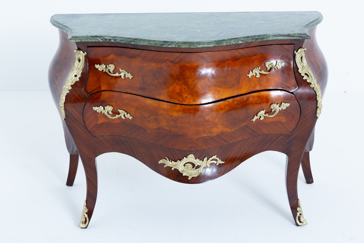 The Commode is adorned with Cast Brass Decorative Handles and Mounts.