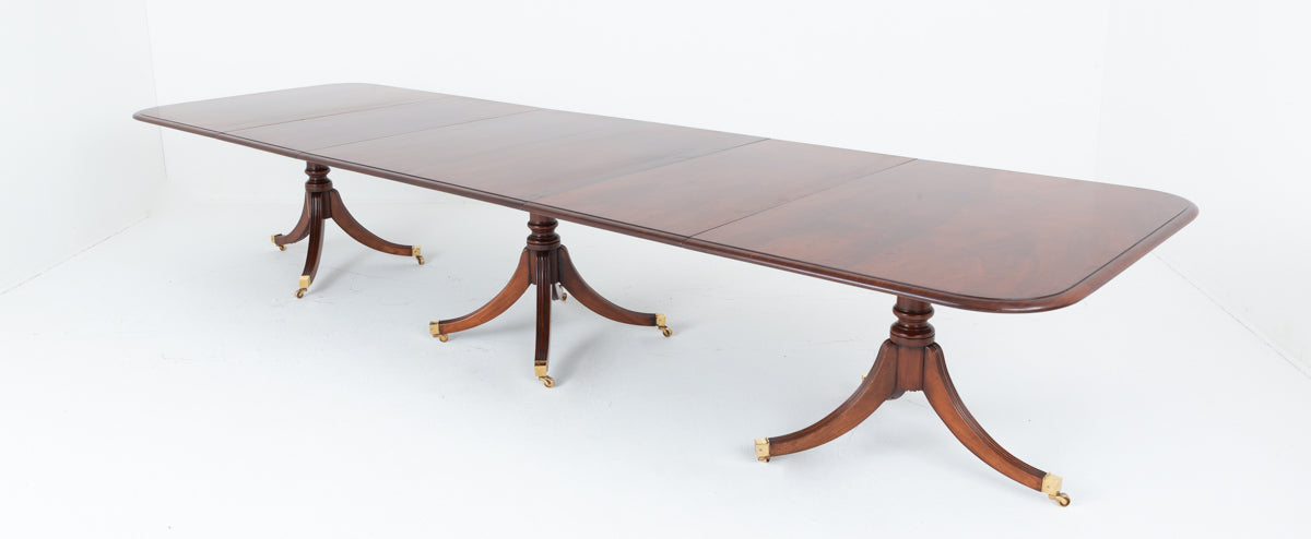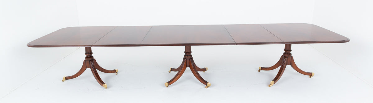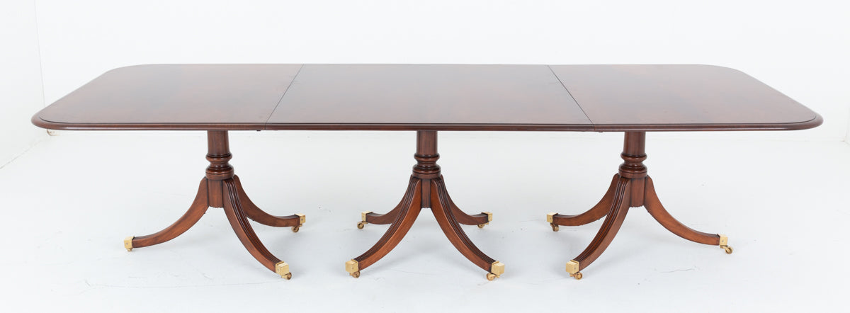 Mahogany Regency Style 14-16 Seat 3 Pedestal Dining Table
