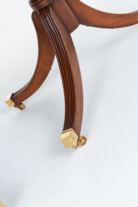 This Table Stands Upon Typical Regency Style Pedestal With Swept Fluted Legs and Brass Box Castors and Turned Columns.