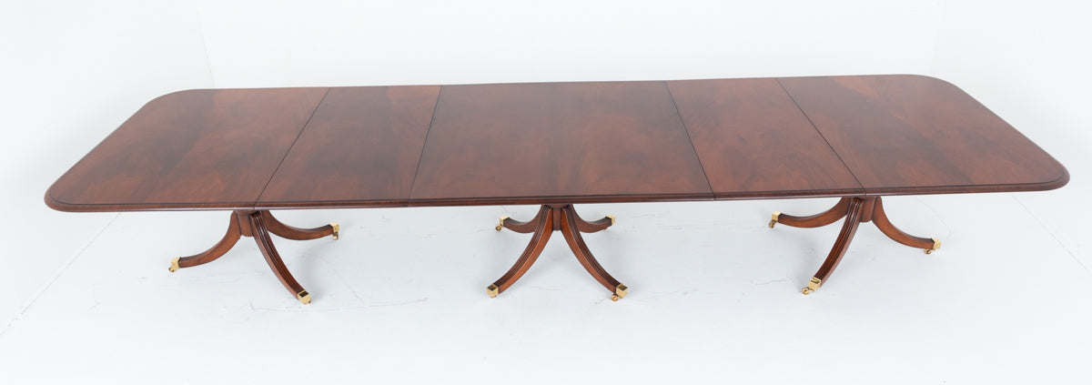 Mahogany Regency Style 14-16 Seat 3 Pedestal Dining Table.
