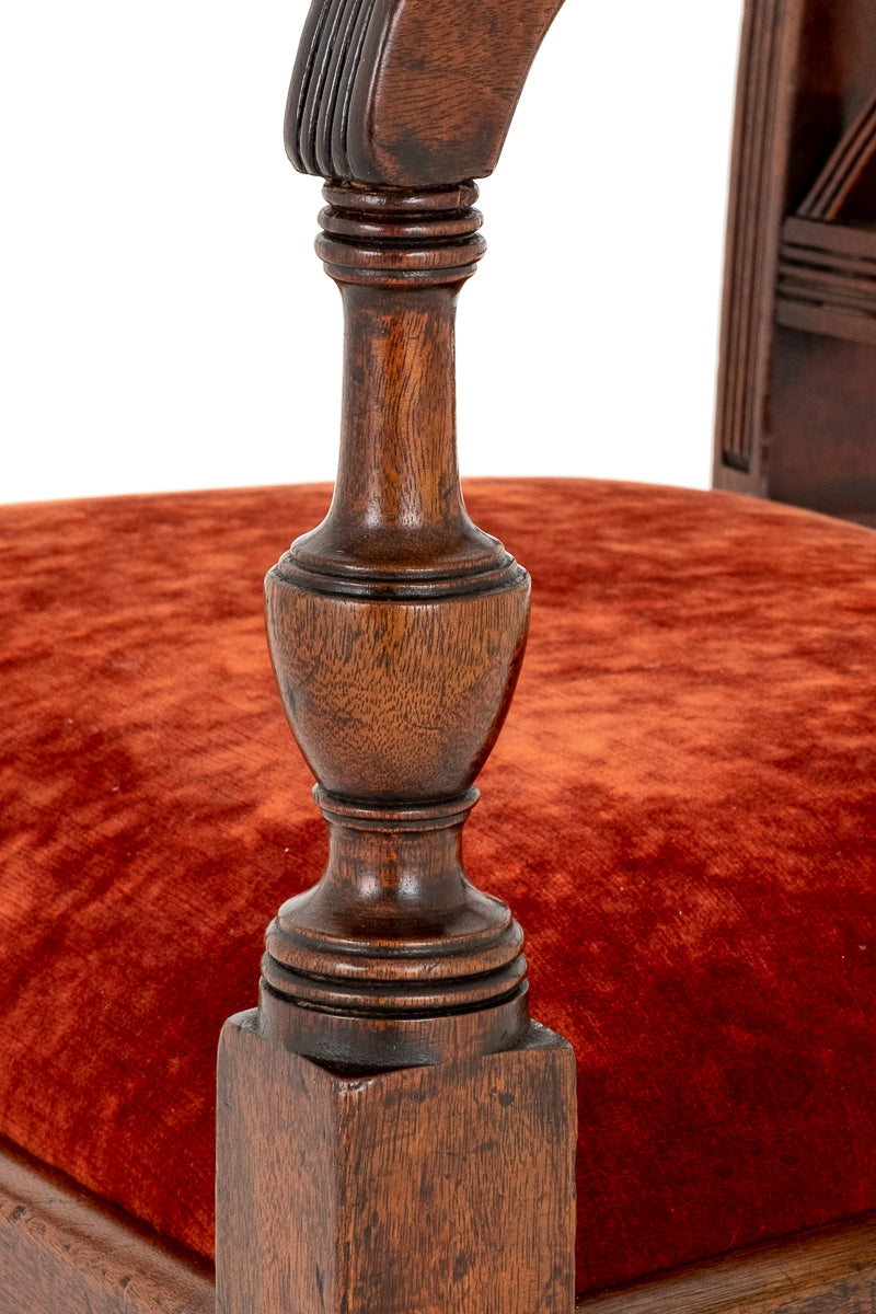 The Chairs Feature Shaped Fluted Arms with Turned Supports.