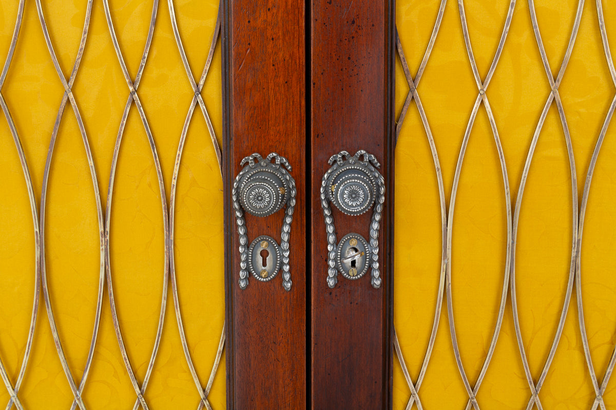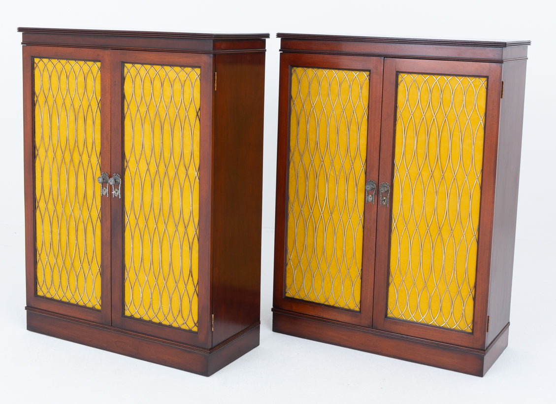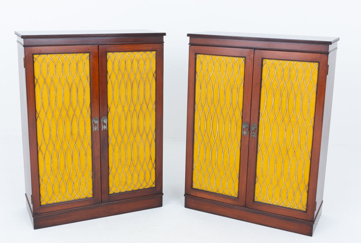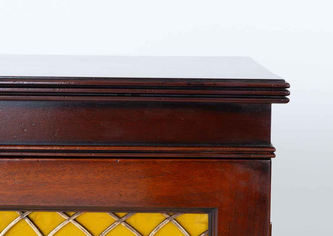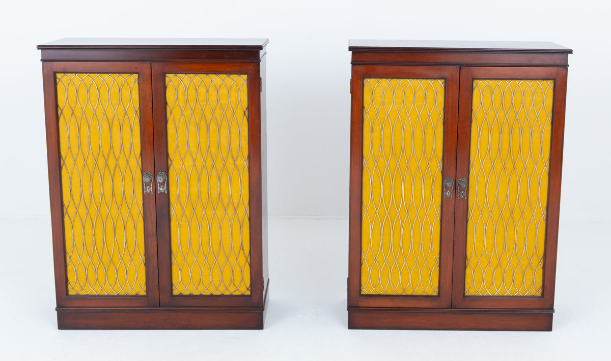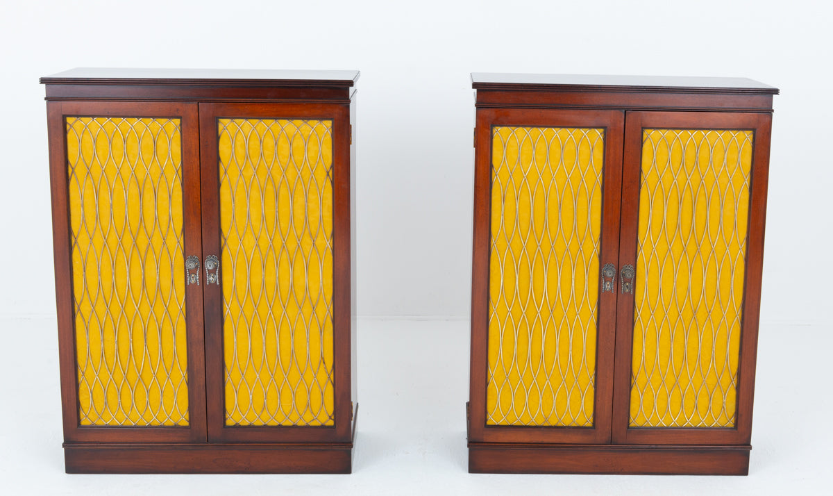 The Cabinets Feature Hand Cut Brass Grills To The Doors Backed With Silk Fabric.