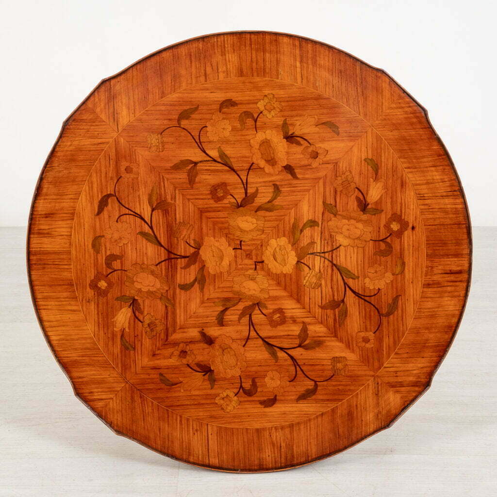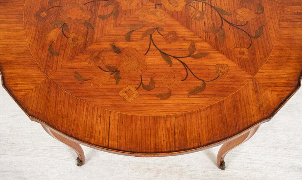 The Top of the Table with Quartered Kingwood Panels Each of The Panels Feature Floral Marquetry Panels.