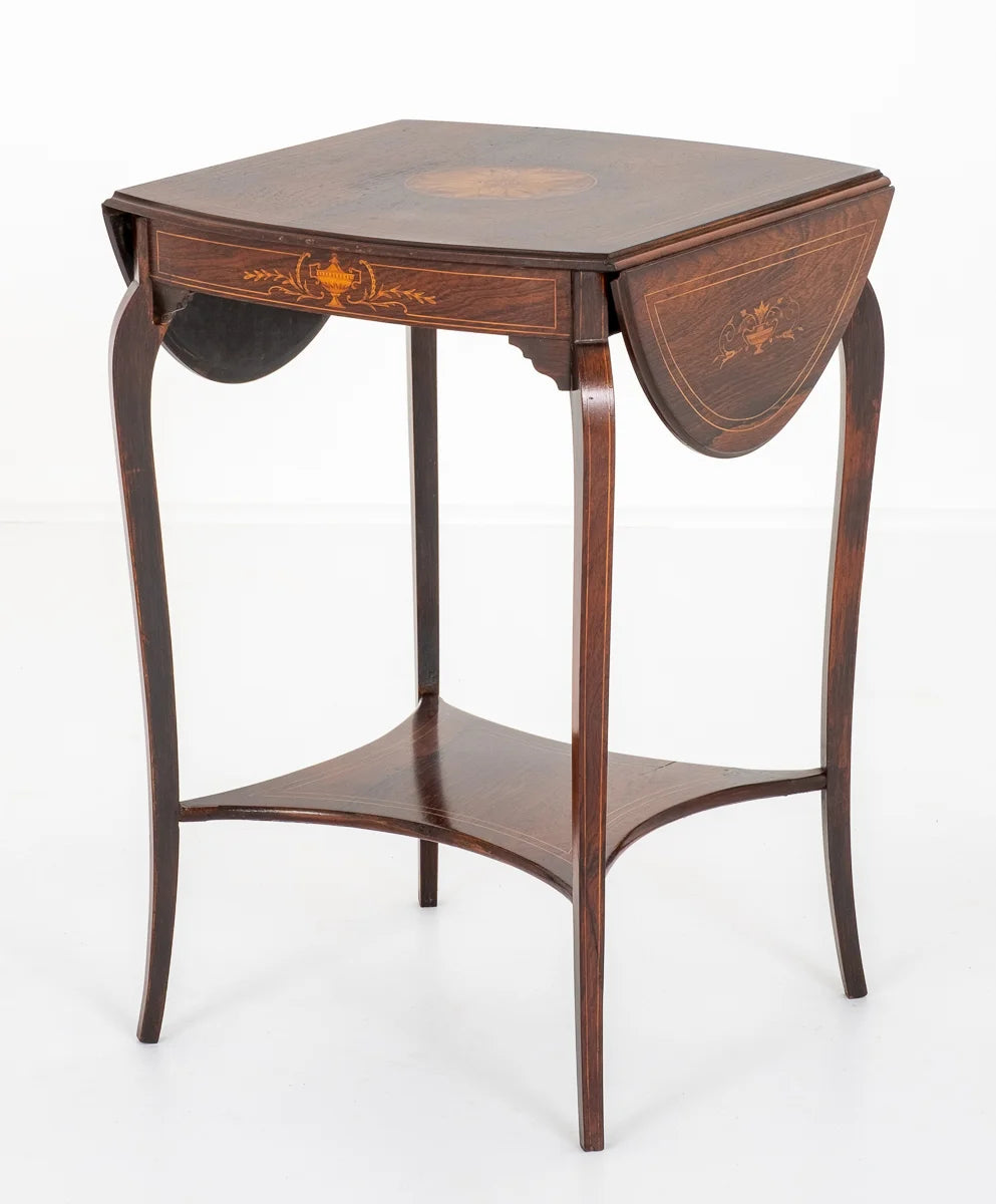 The Top Features 2 Drop Down Flaps with Classical Inlays and a Central Floral Marquetry Panel
