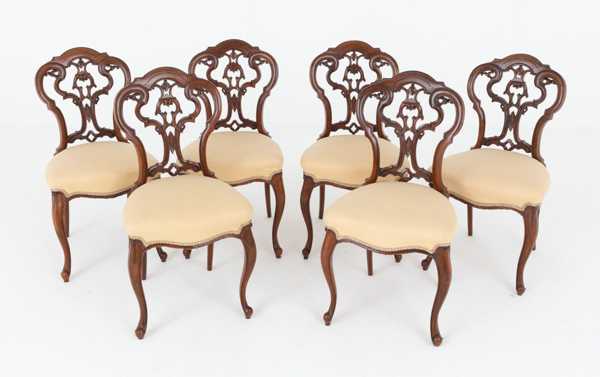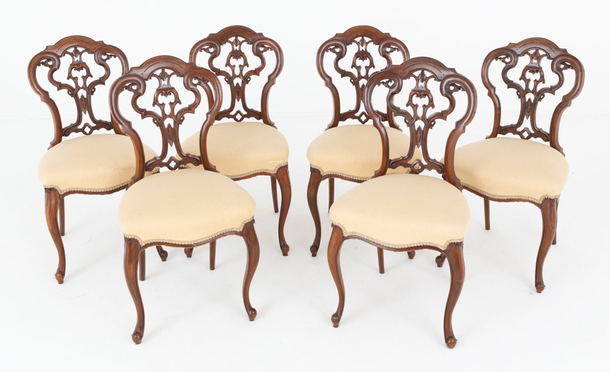 Pretty Set of 6 Walnut Victorian Cabriole Leg Chairs