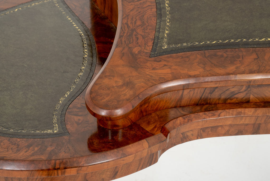 The Kidney Shaped top featuring a raised writing slope with lift up pen and letter rack , topped with a brass gallery.