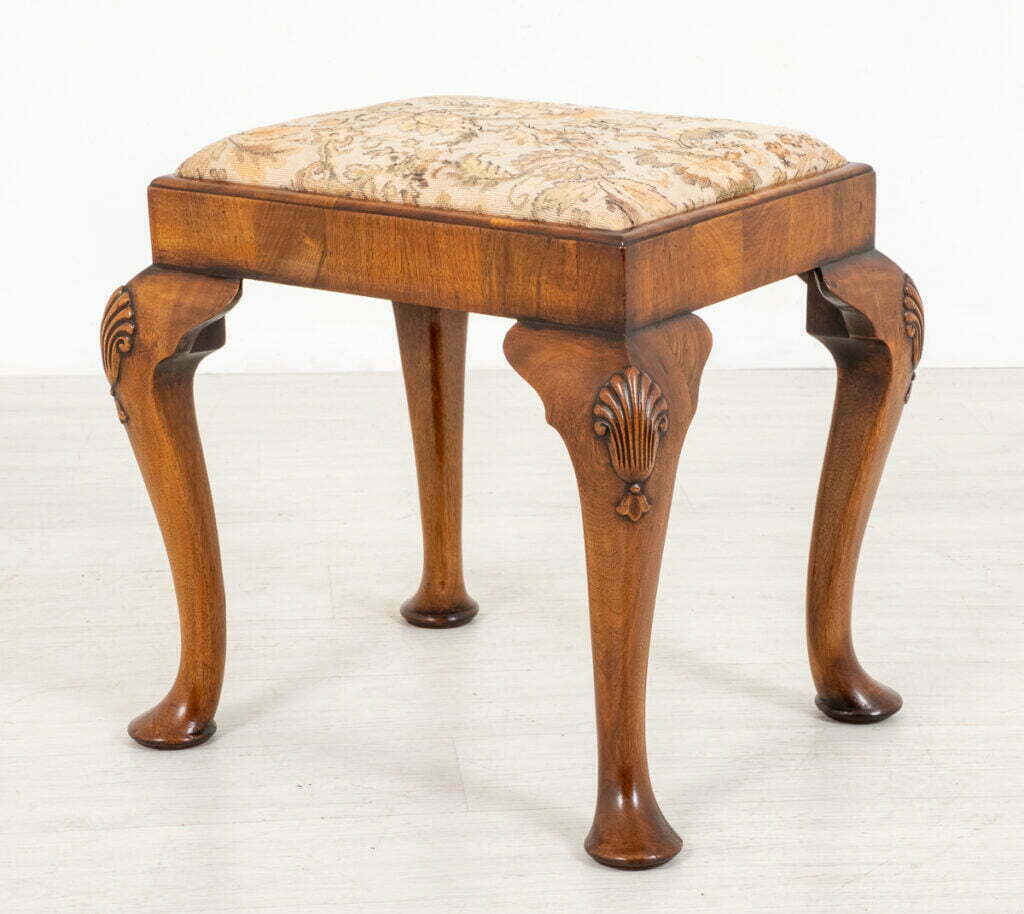 This Quality Stool Stands Upon Cabriole Legs with Pad Feet and Carved Shells to the Knees (Typical of the Queen Anne Style)The Stool has a Pop Out Upholstered Sea.