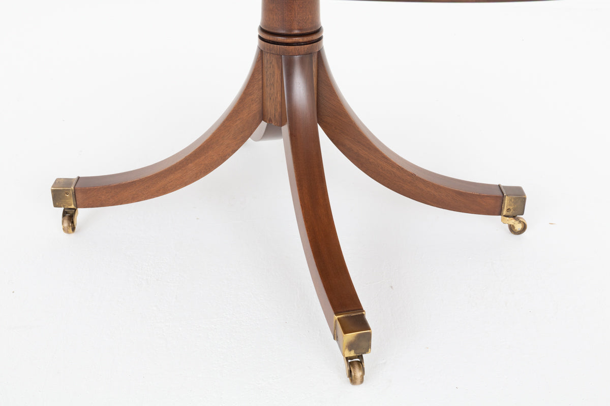 This Quality Mahogany Regency Style Coffee Table is Raised Upon 4 Swept Legs With Brass Castors and a Turned Column.