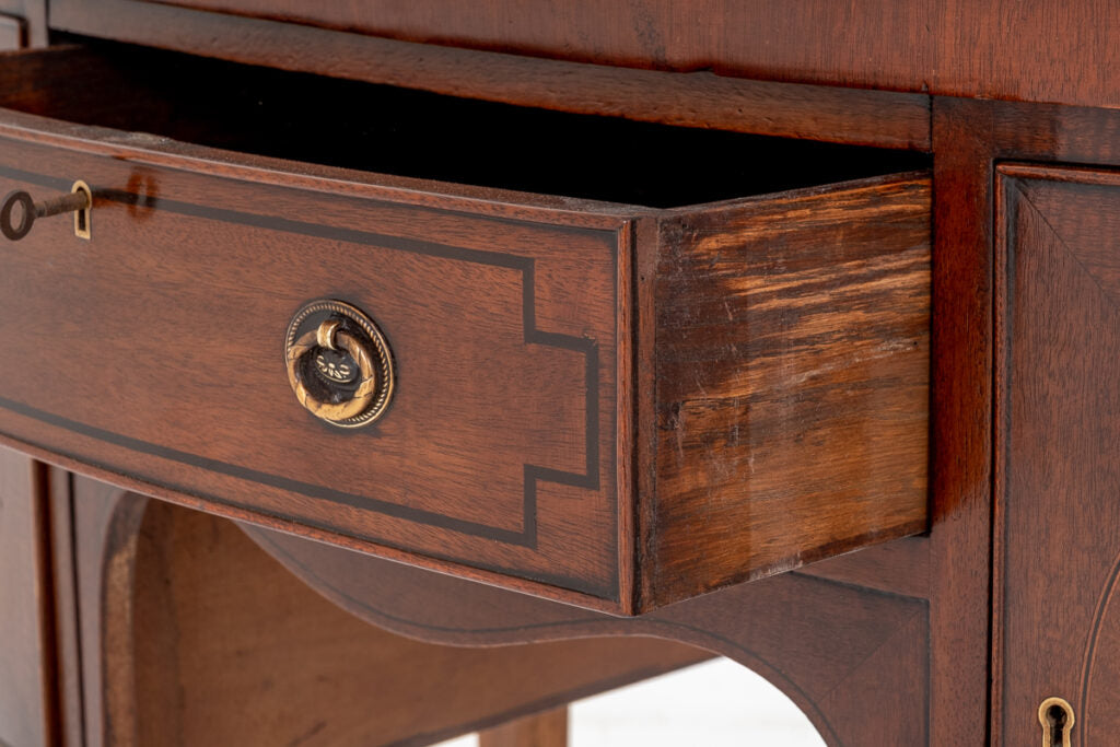 1 x Oak lined Central Drawer flanked by 2 x cupboards with circular inlays to the doors.