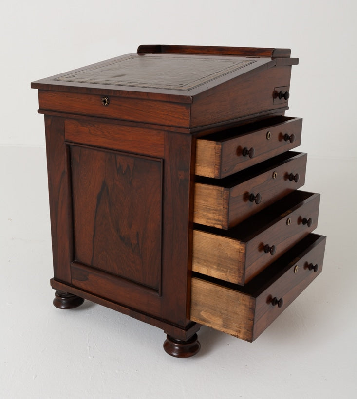The Davenport desk is named after Captain Davenport, who is said to have commissioned the first of these desks from the famous English furniture maker Gillows of Lancaster in the late 18th century.