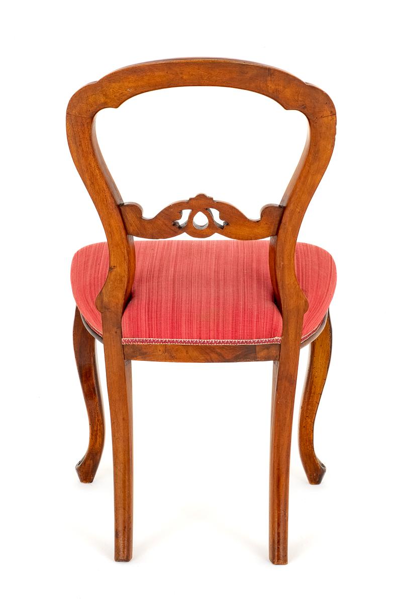 Set of 6 Walnut Victorian Cabriole Leg Dining Chairs - Red