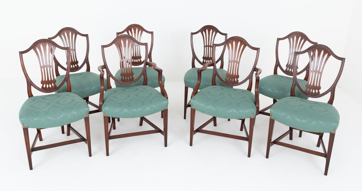 Set of 8 (6 + 2) Mahogany Hepplewhite Revival Dining Chairs