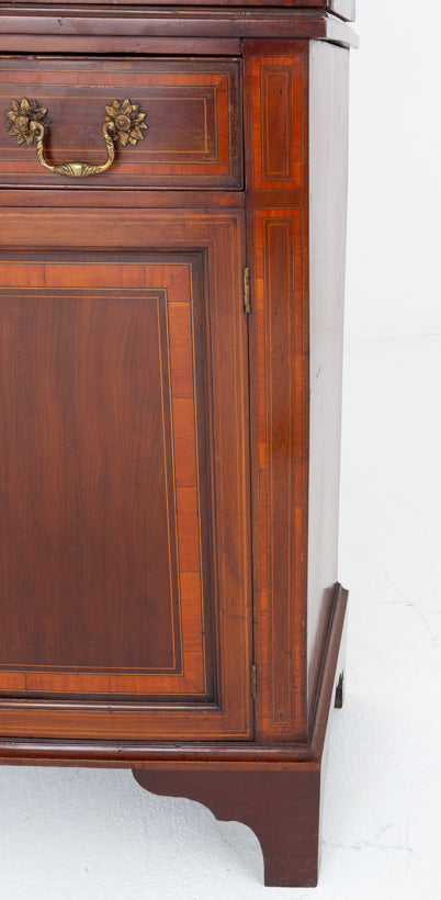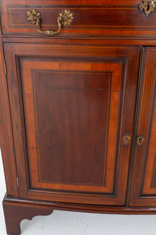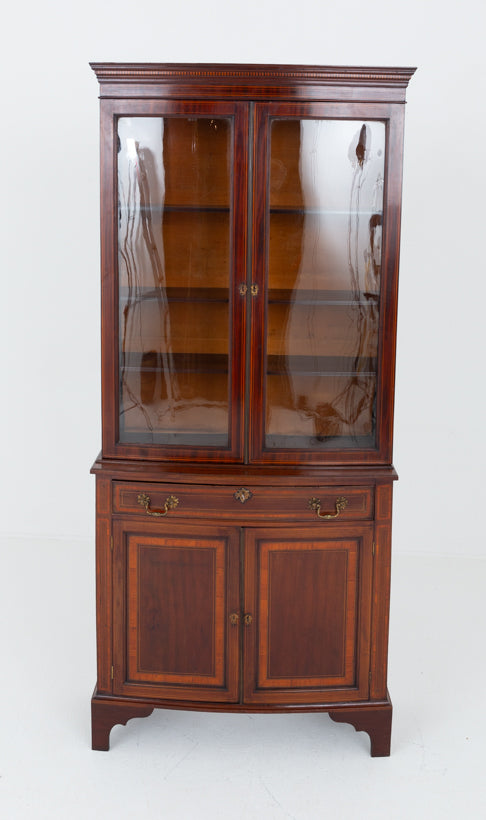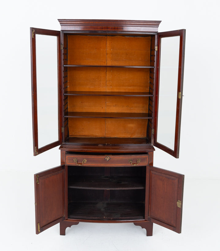 The Upper Section Having 2 Bow Glass Doors Which Open to Reveal Interior Shelves.\The Whole of the Cabinet Having Satinwood Crossbanding and Boxwood Line Inlays.