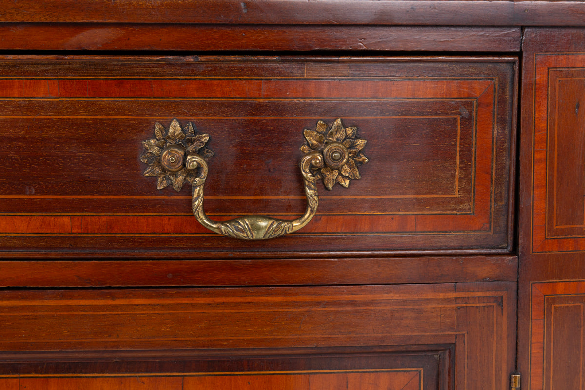 The Drawer Features Decorative Cast Brass Swan Neck Handles.