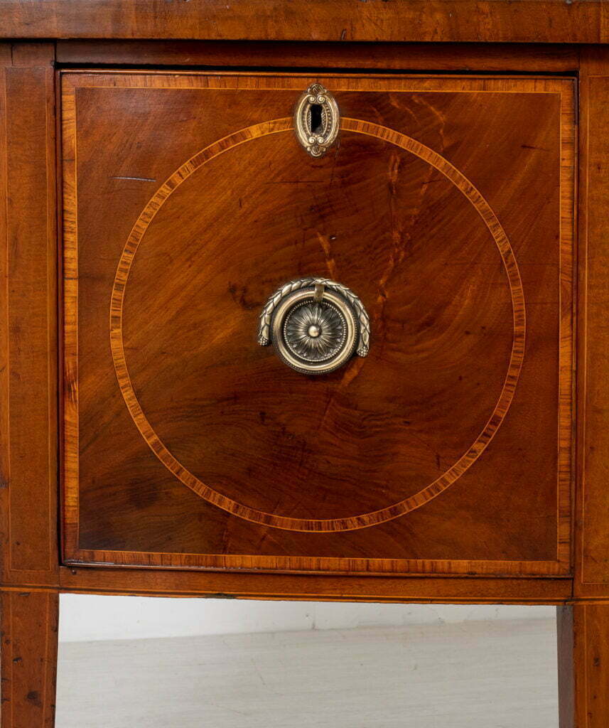 The Drawers Flanked by Cupboards again with Quality Mahogany Veneers, Shell Inlays, Satinwood Crossbanding and Boxwood Inlays.