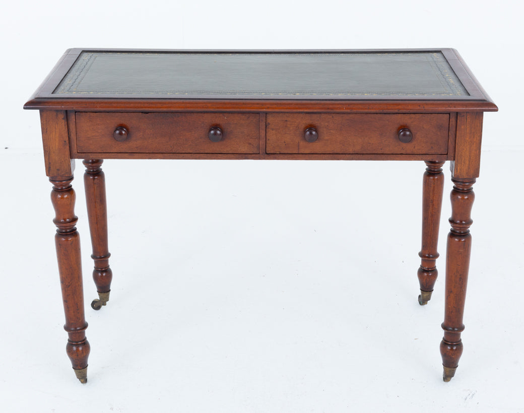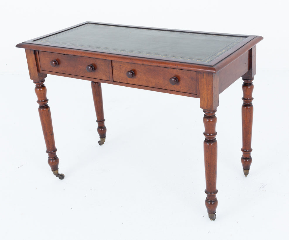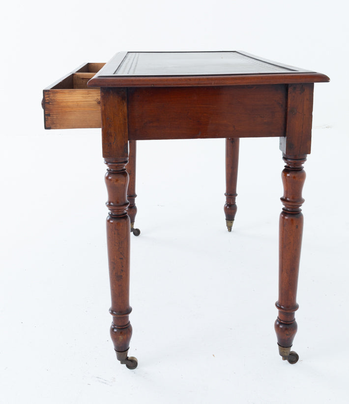 Victorian Mahogany 2 Drawer Writing Table Brass Castors