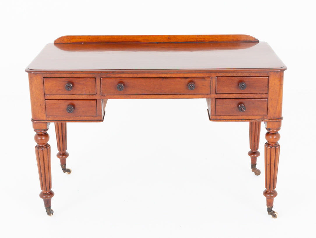 This Writing Table Has an Arrangement of 5 Mahogany Lined Drawers with Turned Knobs.