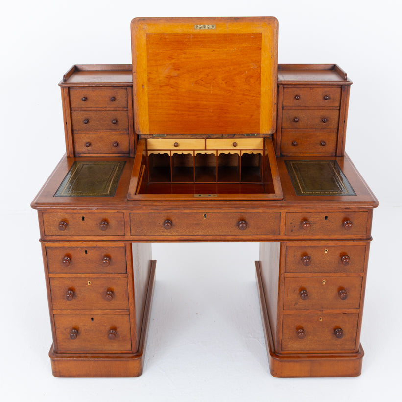 This Desk Features 2 Pedestals and is Raised Upon a Plinth Base.