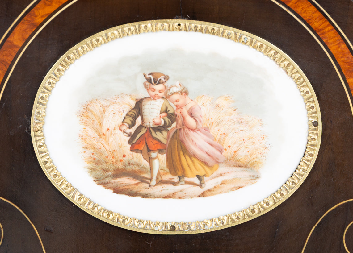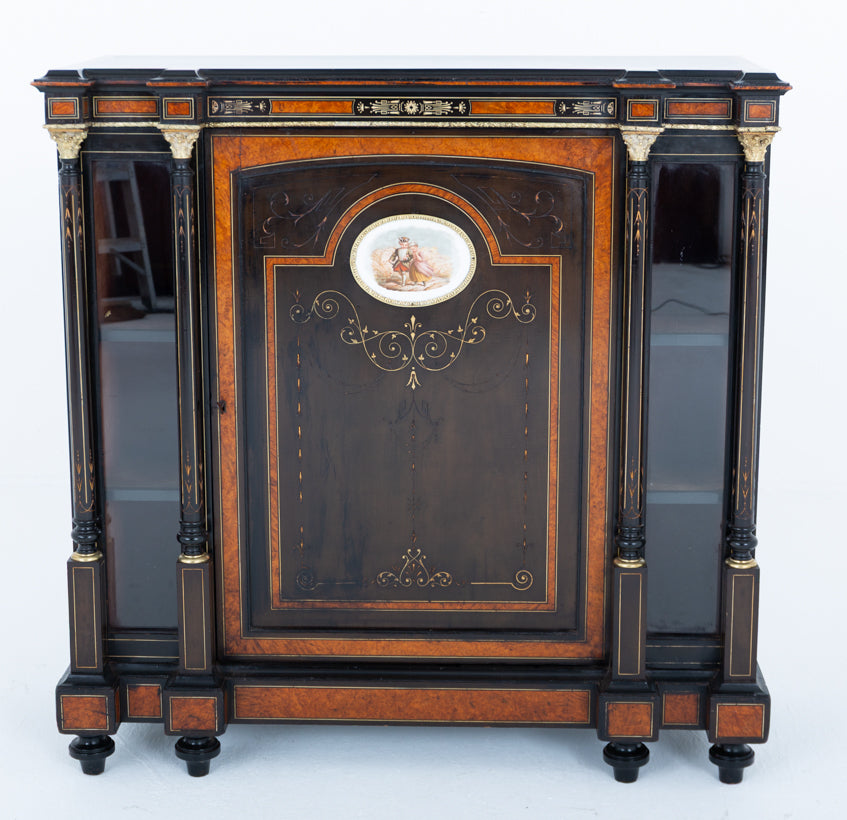 The Cabinet Features 1 Central Door with a Porcelain Plaque and Walnut Crossbanding.