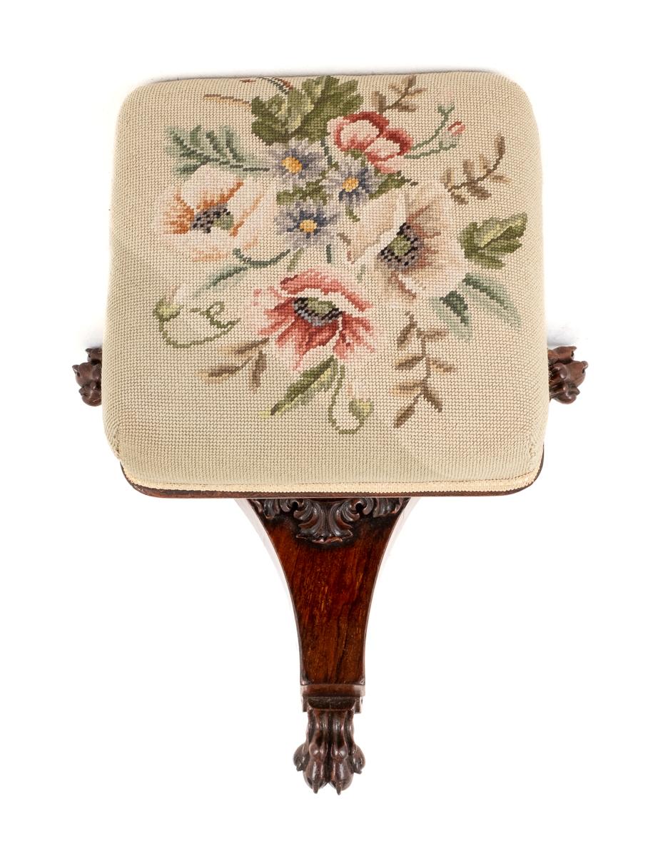 The Stool Features a Triform Base with Boldly Carved Lions Paw Feet.